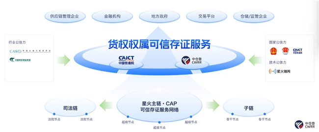 作为“星火·链网”的生态合作伙伴之一,中仓登基于其在货权管理、登记公示与动产融资领域的长期积累,在中国信通院的架构指导与技术赋能下,构建了以“星火·链网”·货权权属可信存证平台为核心的“存证+”业务体系,实现了技术突破与制度完善的双轮驱动,为产业提供坚实的数字信任基础,助力存货资产的价值激活。